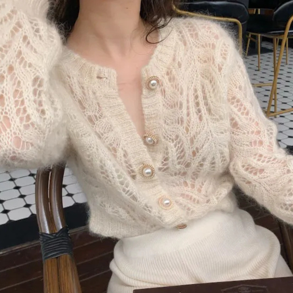 Het unieke breipatroon voegt textuur en charme toe aan elke outfit, waardoor het een veelzijdige keuze is voor zowel casual als formele gelegenheden.