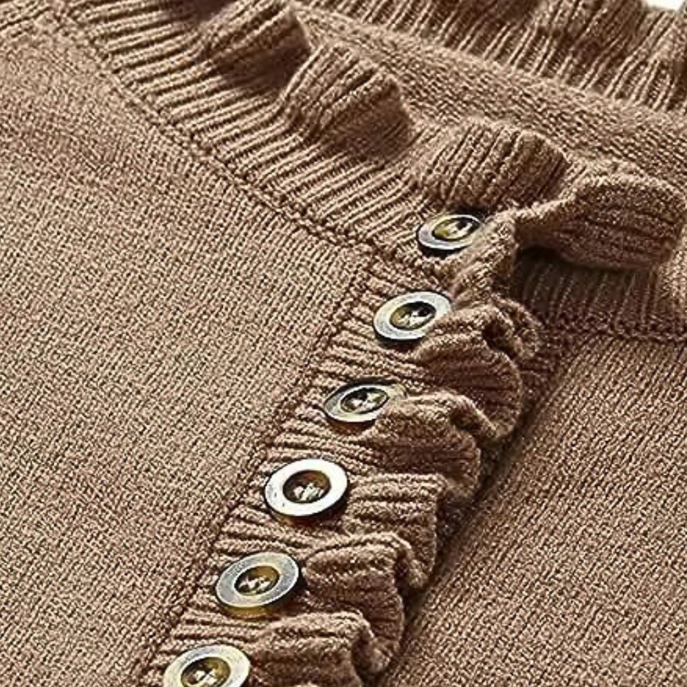 ANN - Moderne Trui voor Dames is een perfecte combinatie van elegantie en aantrekkingskracht. Met zijn verfijnde rimpeldetails langs de kraag en mouwen, voegt deze trui een vrouwelijk accent toe aan je dagelijkse outfit.