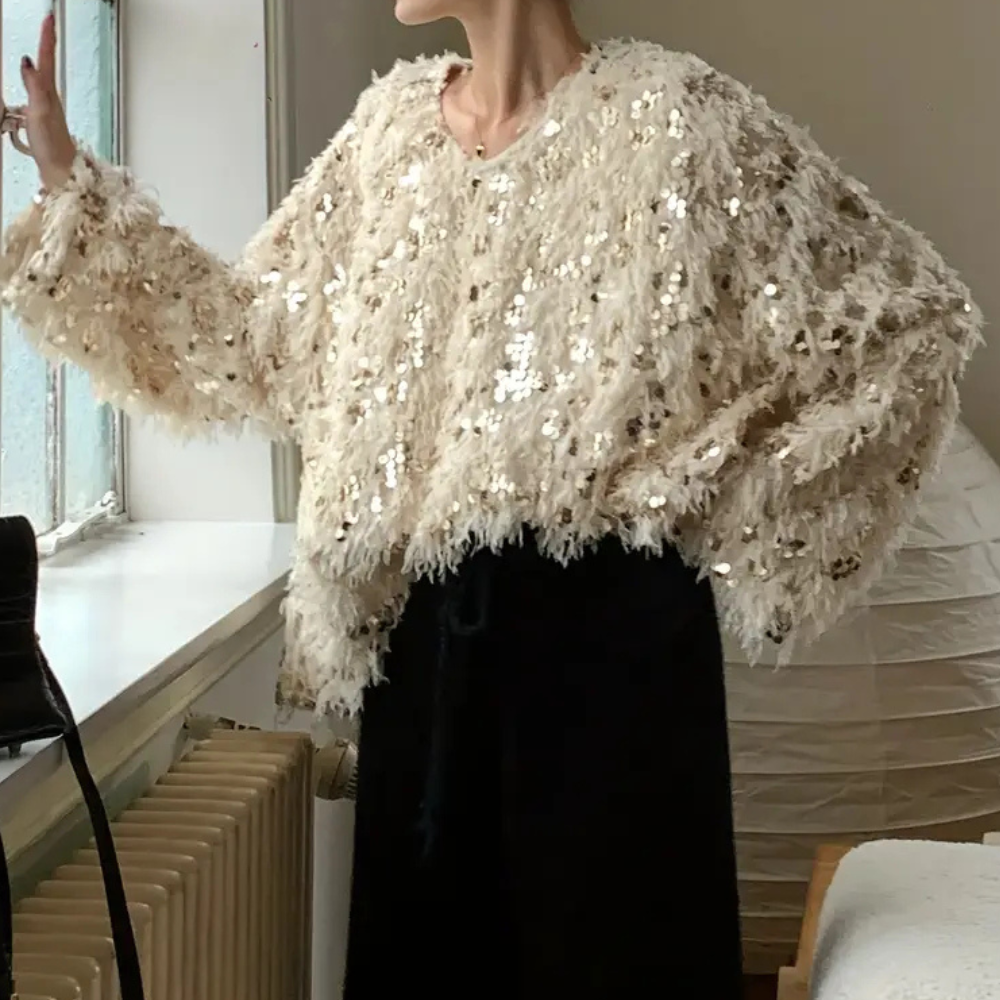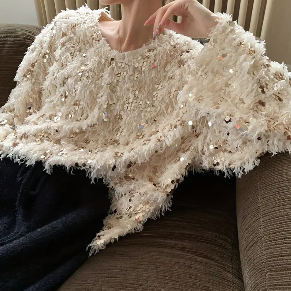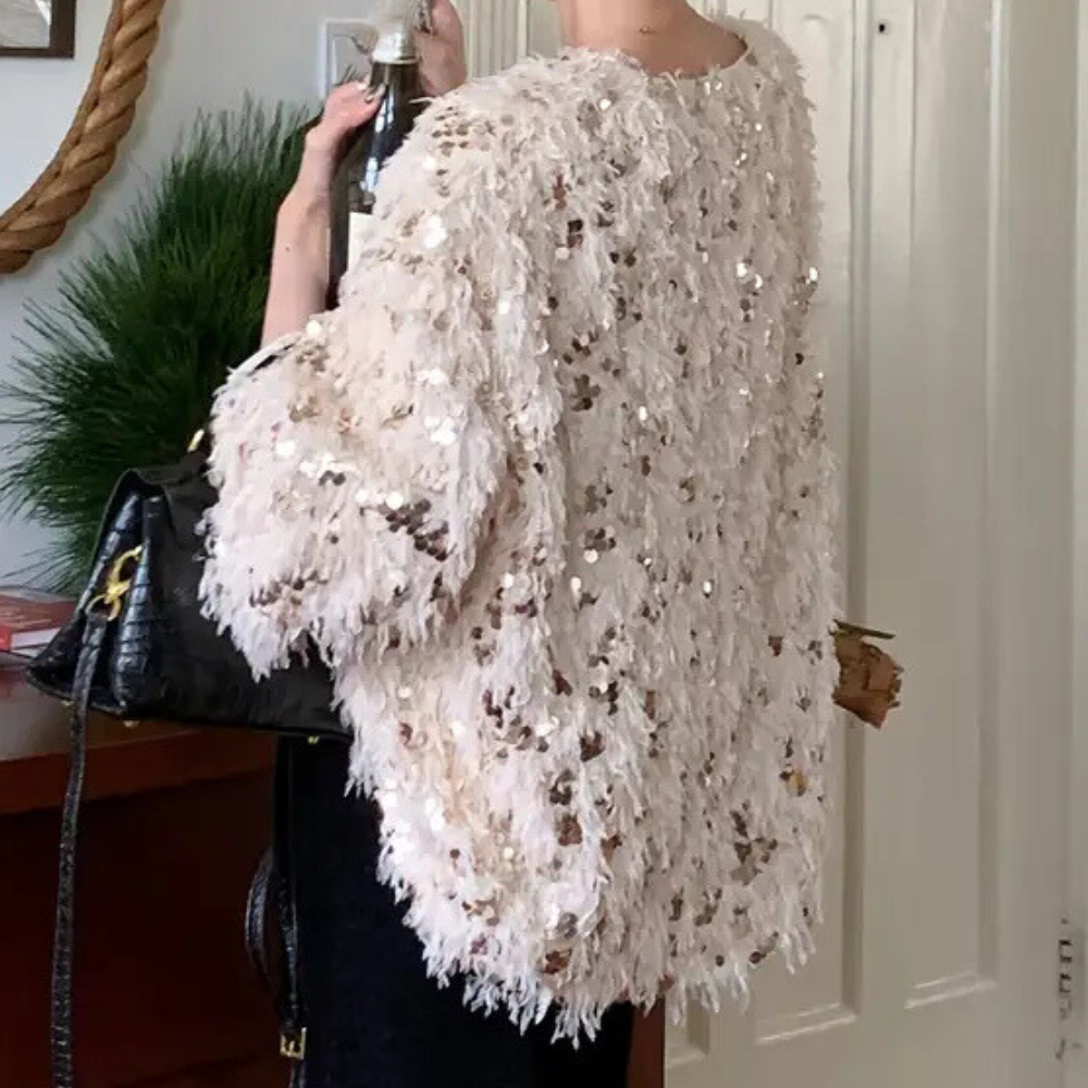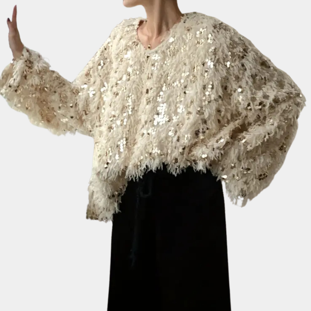 De BERNETTA - Elegante Trui voor Dames is perfect voor diegenen die wat sprankeling aan hun kast willen toevoegen. Deze trui combineert een zachte en comfortabele stof met fonkelende pailletten, waardoor je de ideale mix krijgt van alledaagse stijl en opvallende flair.