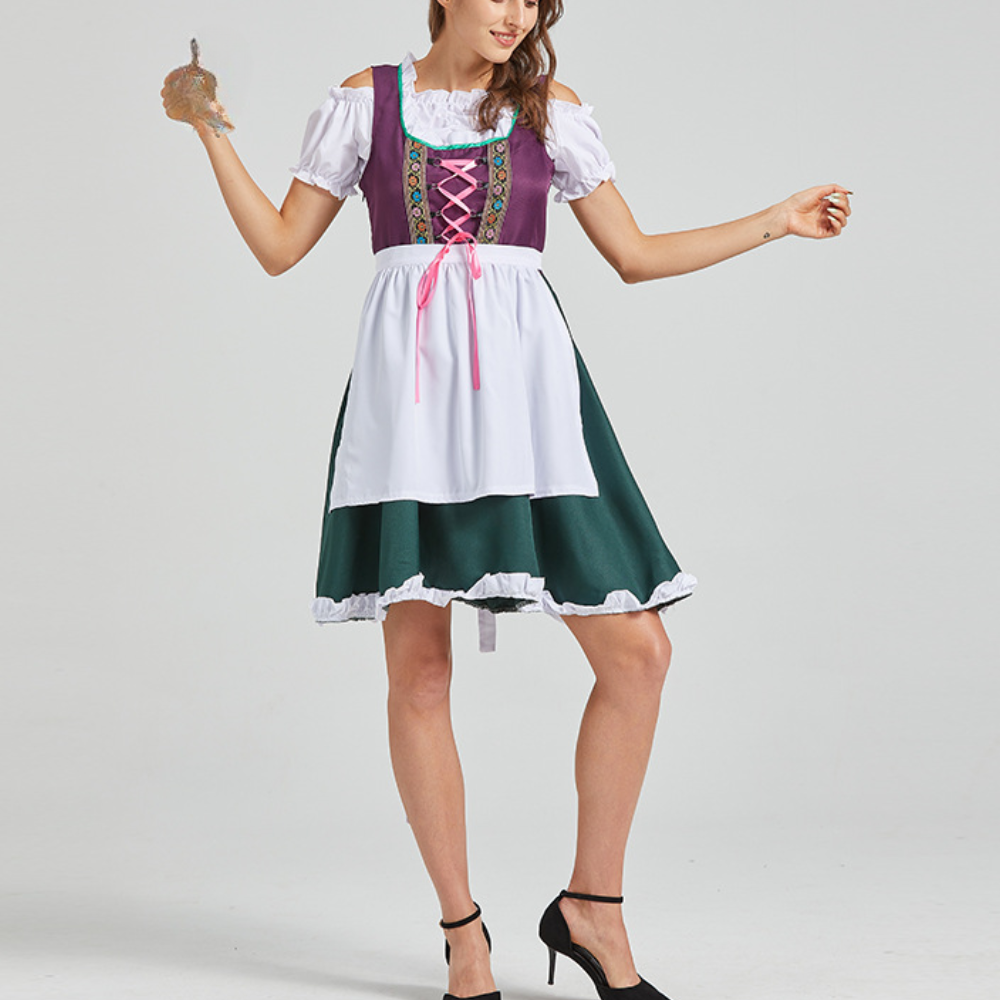 De Celestine Betoverende traditionele jurk voor dames is een betoverend ensemble dat de schoonheid van traditionele kostuummode combineert met een moderne flair. De gedetailleerde schürze en de smaakvol ontworpen blouse geven de outfit een tijdloze elegantie. Of het nu voor feestelijke gelegenheden is of in het dagelijks leven, dit kostuum zal zeker bewonderende blikken trekken.