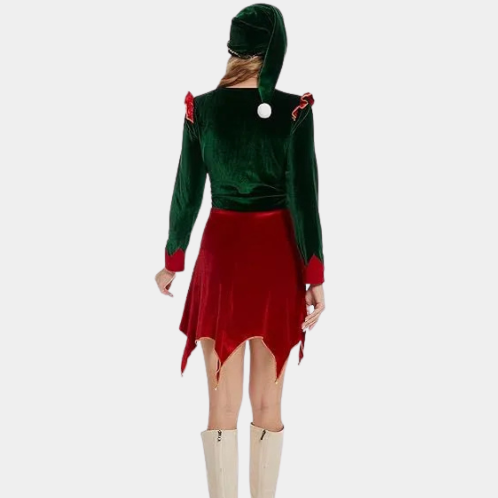 Ontworpen in levendige feestkleuren met speelse elf elementen, is deze jurk ideaal voor kerstfeestjes, familiebijeenkomsten of thema-evenementen. De flatterende snit en aandacht voor feestelijke details maken het een uitstekende keuze om kerstvreugde te verspreiden.