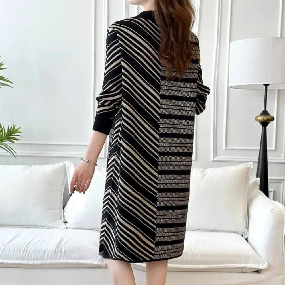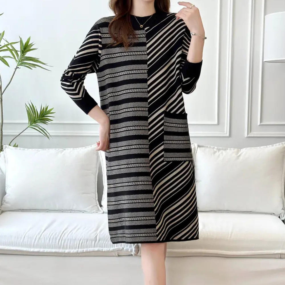 De DIANELLA - Geraffineerde Jurk voor Dames is de ideale combinatie van ontspannen elegantie en veelzijdigheid. Met zijn gestreepte patroon en ruime pasvorm is het een onmisbaar onderdeel van je garderobe, perfect voor zowel casual als formele gelegenheden.