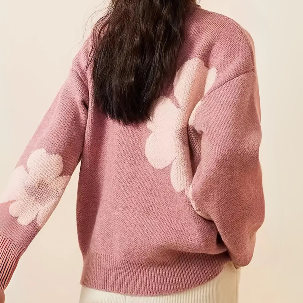 Maak kennis met de ELISABETTA - Modieuze Trui voor Dames, een must-have in elke garderobe die elegantie en comfort combineert. Versierd met een prachtig bloemenpatroon voegt deze trui een speelse en stijlvolle touch toe aan je alledaagse outfits.