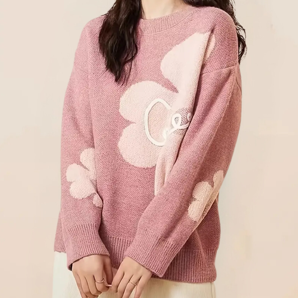Deze gebreide trui is gemaakt van zacht en hoogwaardig materiaal, wat zorgt voor een comfortabele pasvorm en duurzaamheid. Geraffineerde bloemendetails versterken de vrouwelijke charme, waardoor deze trui perfect is voor zowel casual als formelere gelegenheden.