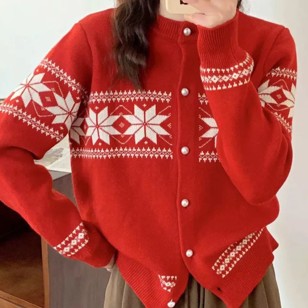 ELYSE - Comfortabel Kerstvest voor Dames is de ideale optie voor een geraffineerde en feestelijke look tijdens de feestdagen. Deze prachtige trui combineert stijl en warmte op een manier die je zeker zal aanspreken.