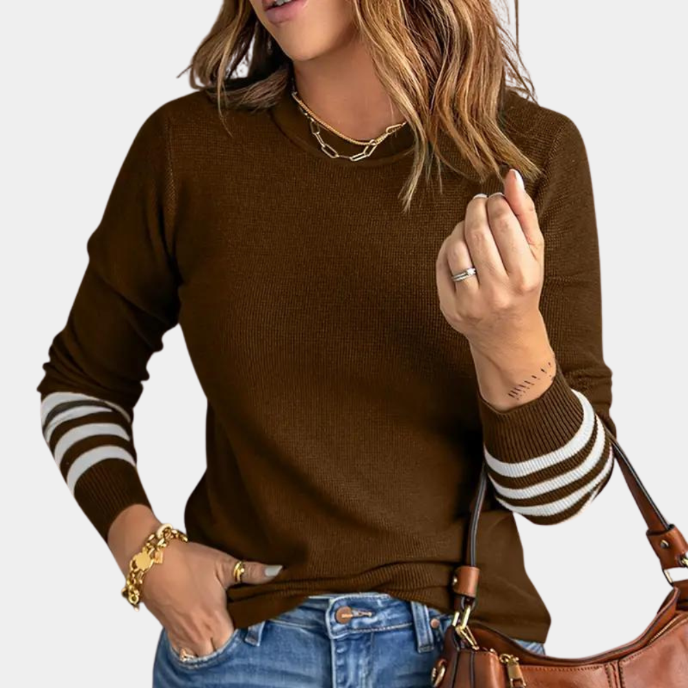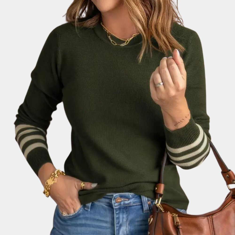 Ondanks de ruime vorm benadrukt onze Ema Elegante damestrui met gestreepte mouwen je rondingen en creëer je een vrouwelijke en verfijnde look.