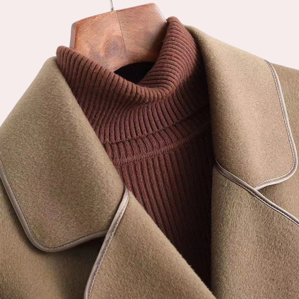 De FERIDE - Luxe Riemjas voor Dames is de perfecte keuze voor iedereen die houdt van een tijdloos ontwerp gecombineerd met comfort. Deze jas, met een stijlvolle gelaagde vorm, accentueert je figuur en biedt tegelijkertijd de nodige warmte op koude dagen.