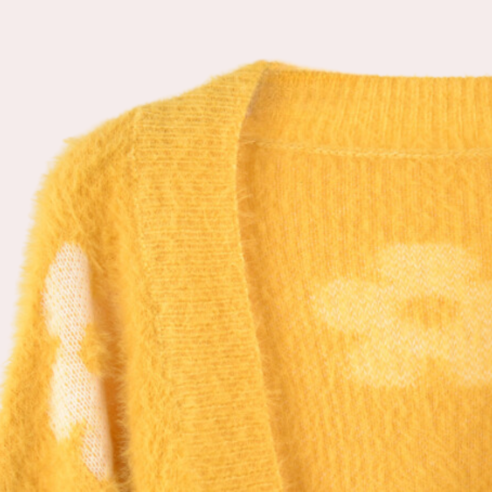 Met zijn speelse lantaarnmouwen en verfijnde gebreide ontwerp voegt deze cropped trui een vleugje speelsheid toe aan je outfit. Of je nu de stad in gaat of knus thuis blijft, het elegante en betoverende bloemenpatroon houdt je stijlvol en chic.
