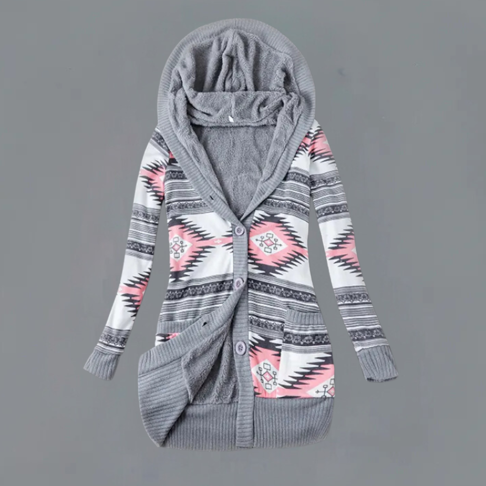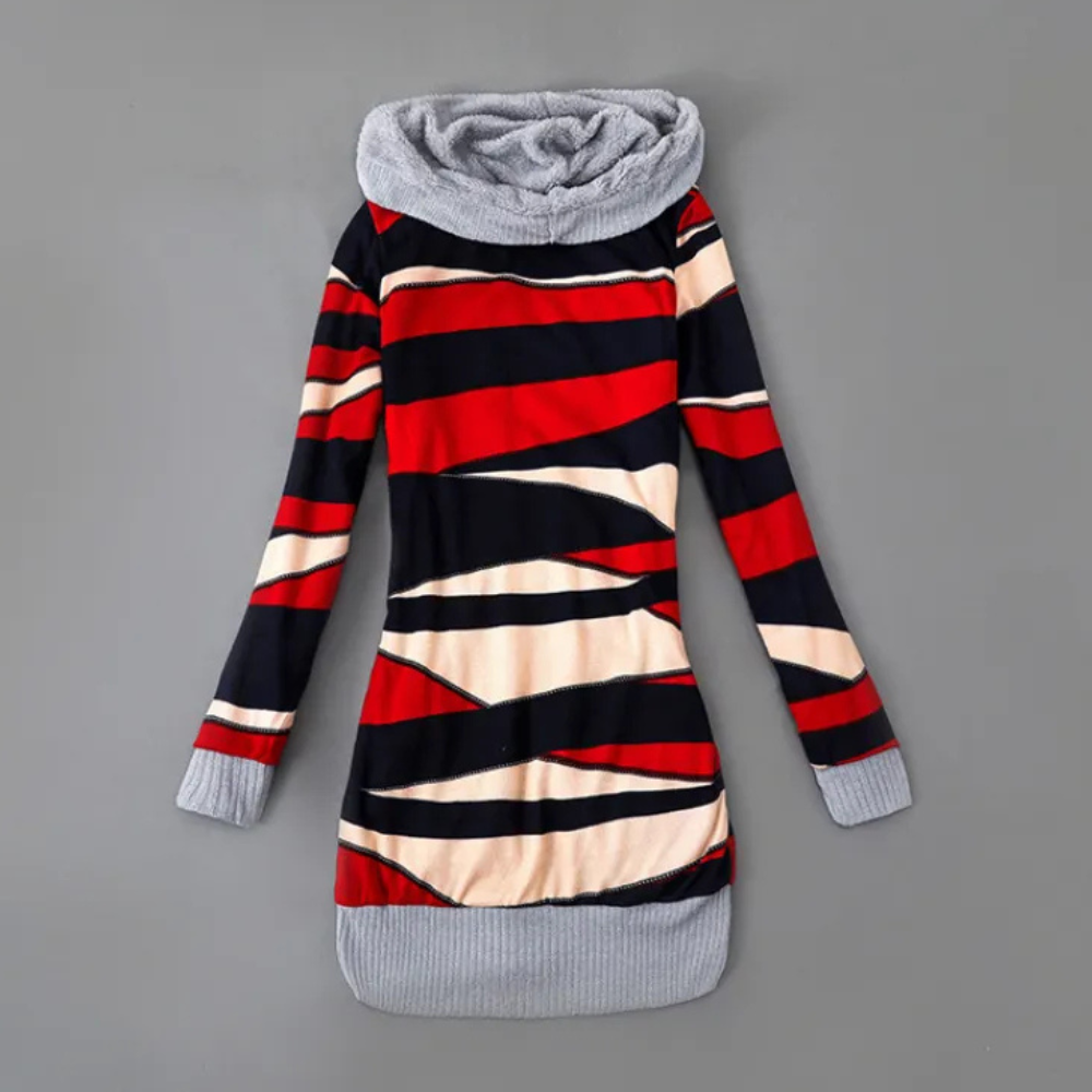 Deze middellange trui met capuchon biedt je alles wat je nodig hebt.