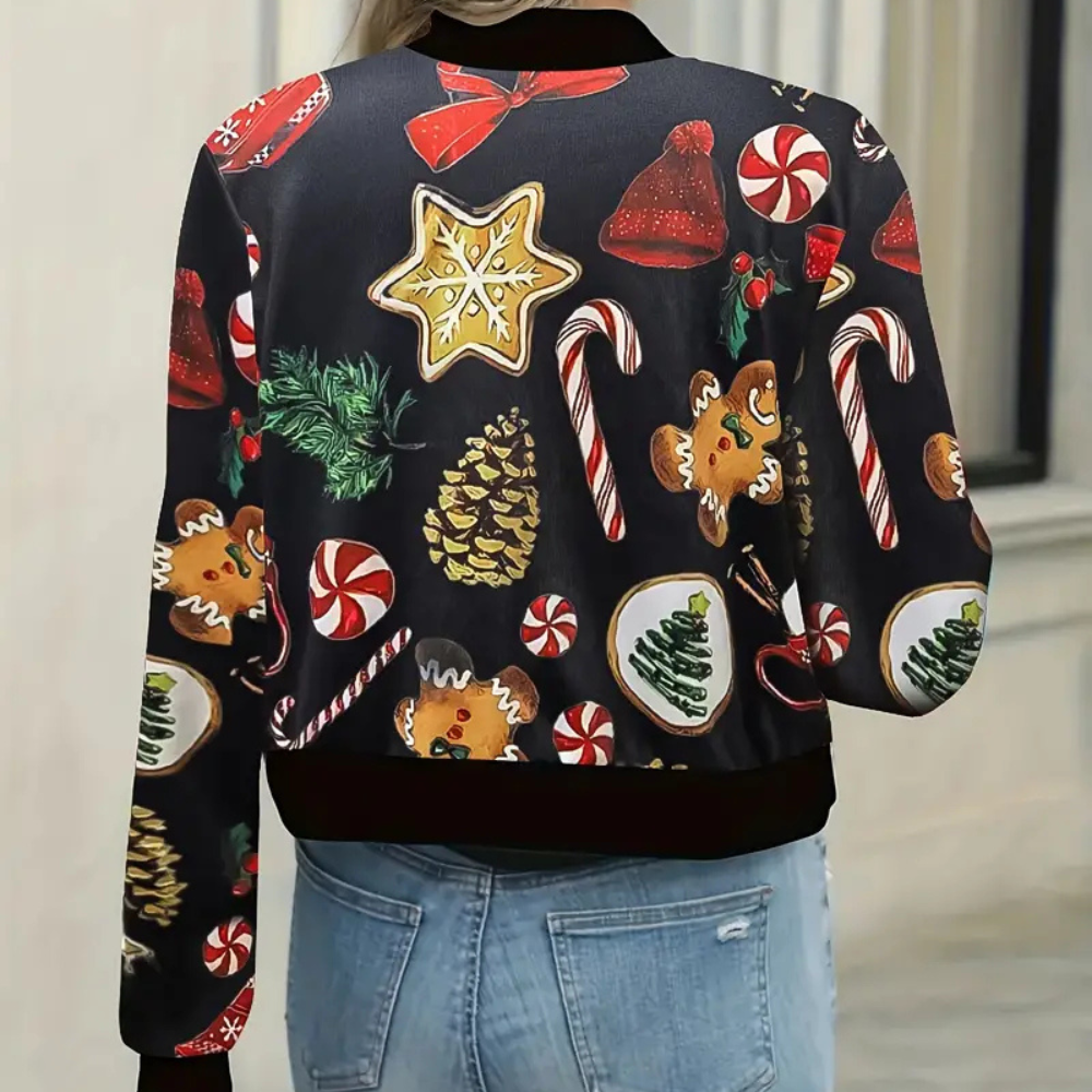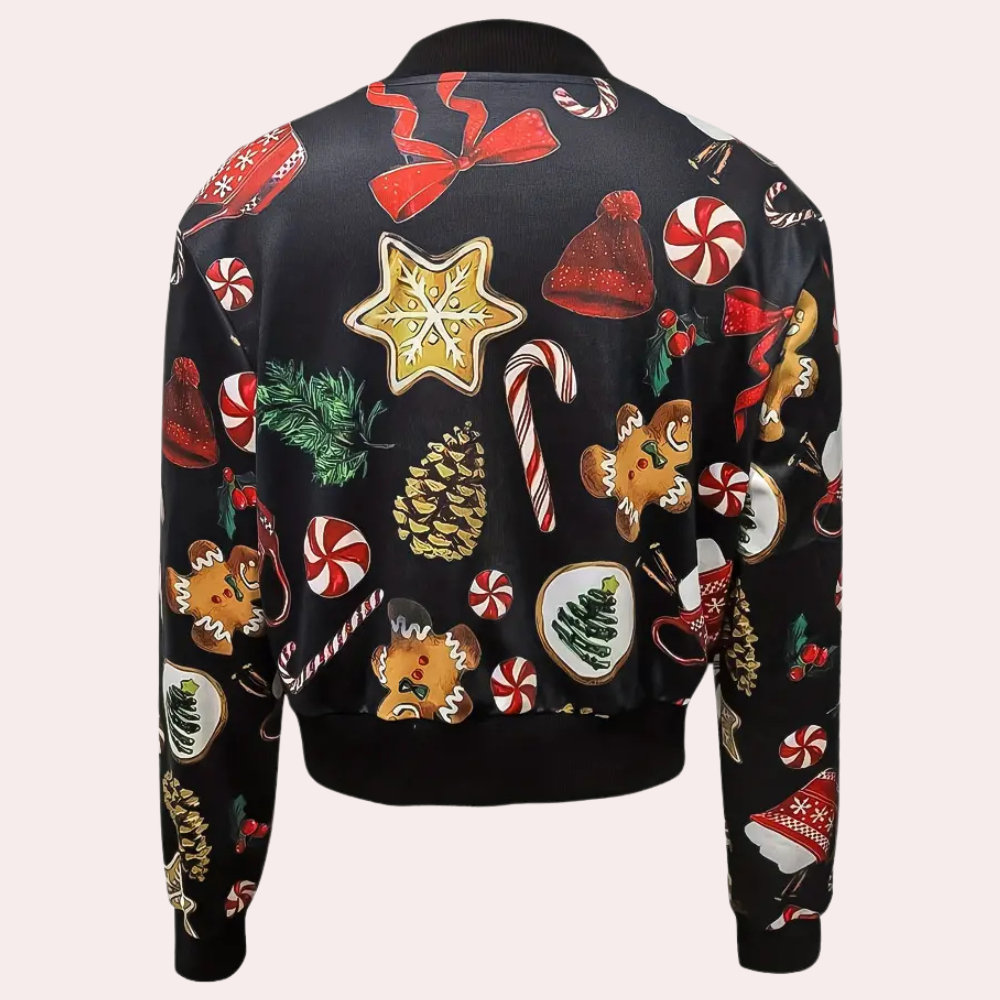 De JORJA - Modieuze Kerstjas voor Dames is perfect om een feestelijke sfeer aan je winteroutfit toe te voegen. Dit kledingstuk is ontworpen met een levendig en vrolijk patroon, waardoor je altijd opvalt tijdens elke feestelijke bijeenkomst of winterse viering.