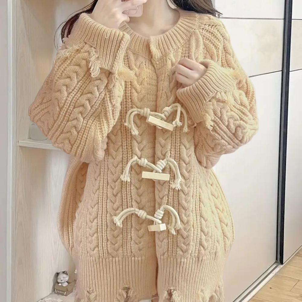 Onze Julianna Warm en elegant damesvest combineert comfort en veelzijdigheid in één kledingstuk. Of je nu thuis bent of een dagje uit plant, deze gebreide cardigan zorgt voor een stijlvolle, maar comfortabele uitstraling. Het materiaal is ademend en ideaal voor de koudere maanden van het jaar.