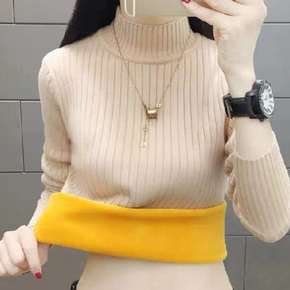 Tijdloos ontwerp: De geribbelde textuur geeft diepte, terwijl de col je warm en modieus houdt.