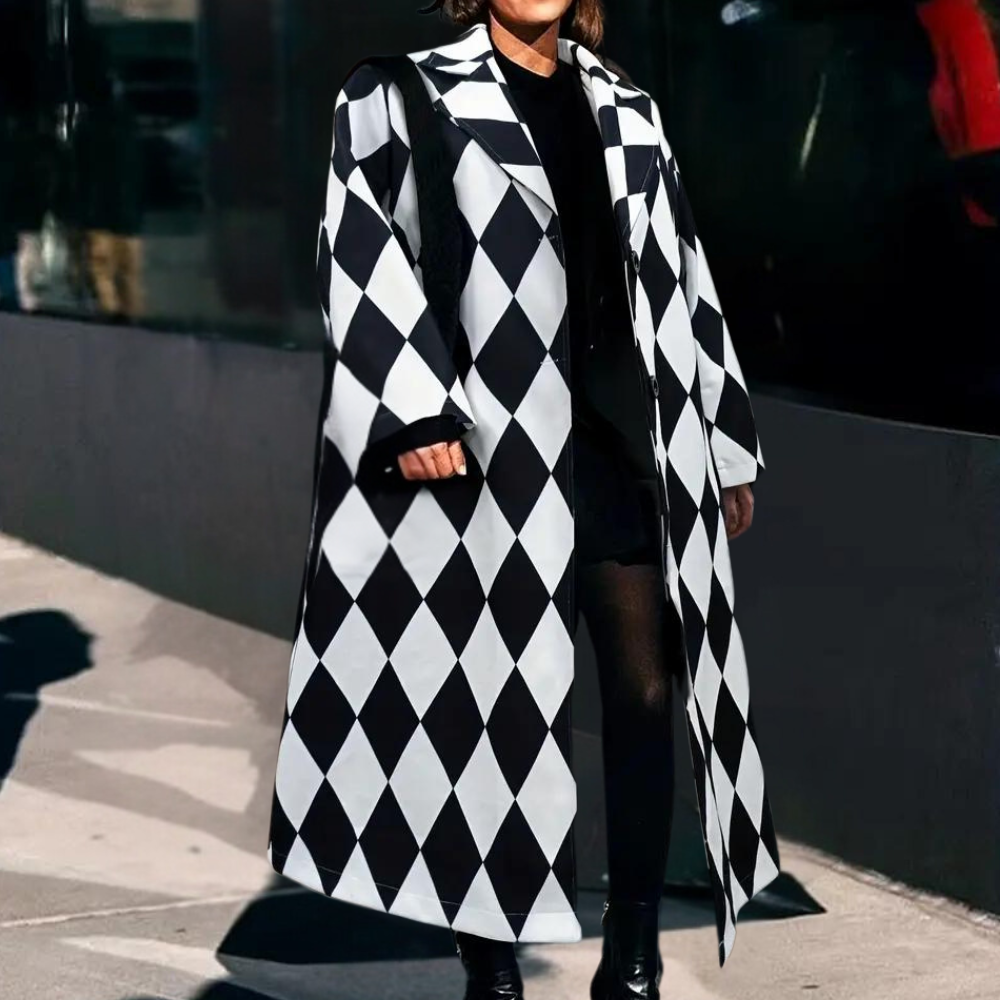 Met een flatterende pasvorm en veelzijdigheid is deze mantel perfect voor zowel dagelijkse boodschappen als sociale evenementen.