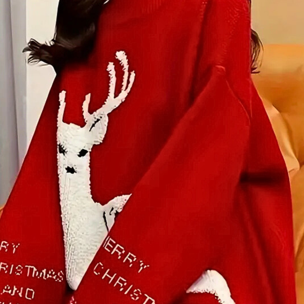 Het zachte en duurzame materiaal houdt je warm terwijl je de kerstsfeer verspreidt, en je kunt hem gemakkelijk combineren met jeans of leggings voor een moeiteloze, feestelijke look.