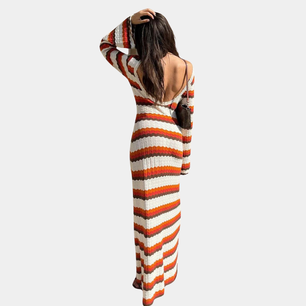 Stijlvolle zomerse gebreide jurk met strepen voor dames