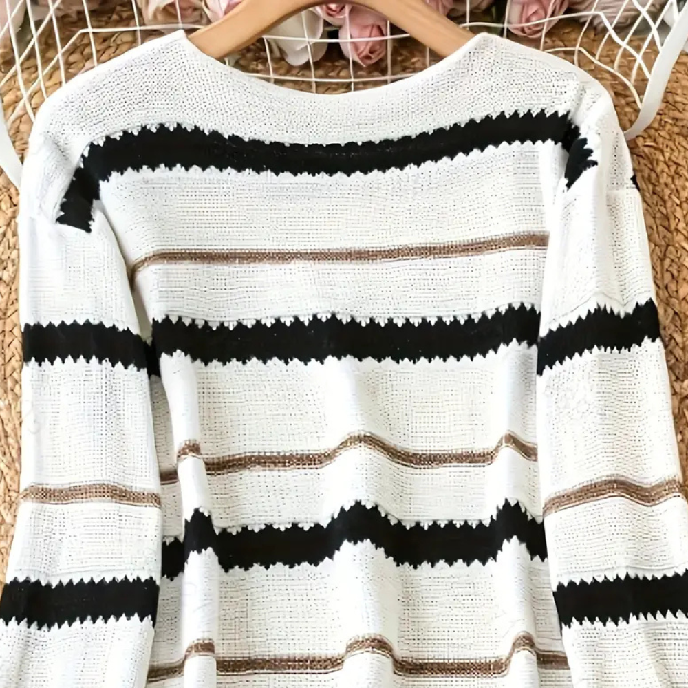 Met zijn tijdloze gestreepte ontwerp biedt deze trui een elegante look die geschikt is voor verschillende gelegenheden.