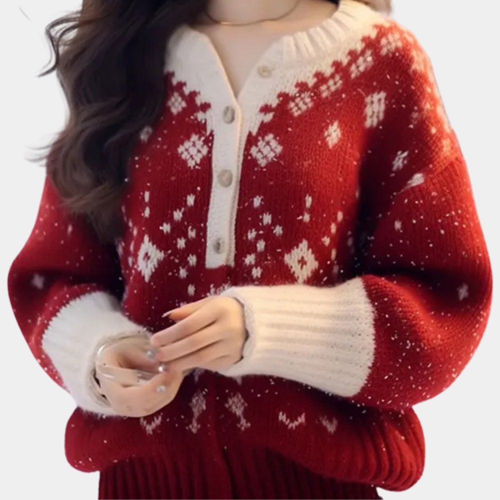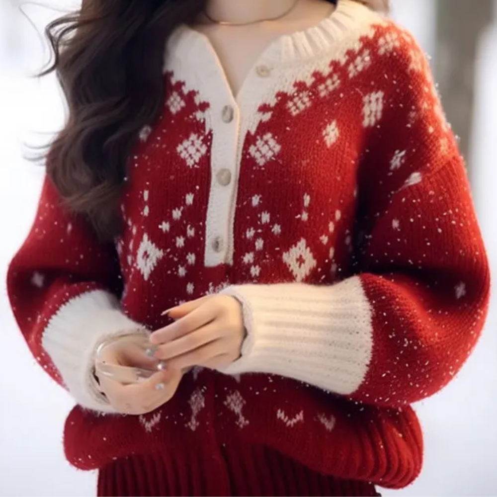 De MARIANNE - Stijlvolle Kersttrui voor Dames is de perfecte manier om de feestdagen subtiel te vieren. Met zijn strakke ontwerp en geraffineerde kerstdetails biedt deze trui een elegante benadering van feestelijke mode.