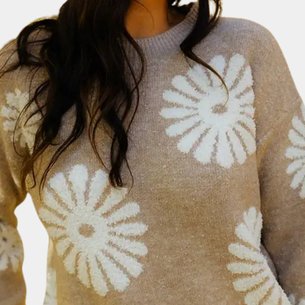 De MARLEY - Modieuze Gebreide Trui voor Dames is de perfecte combinatie van stijl en comfort met zijn opvallende bloemmotief.