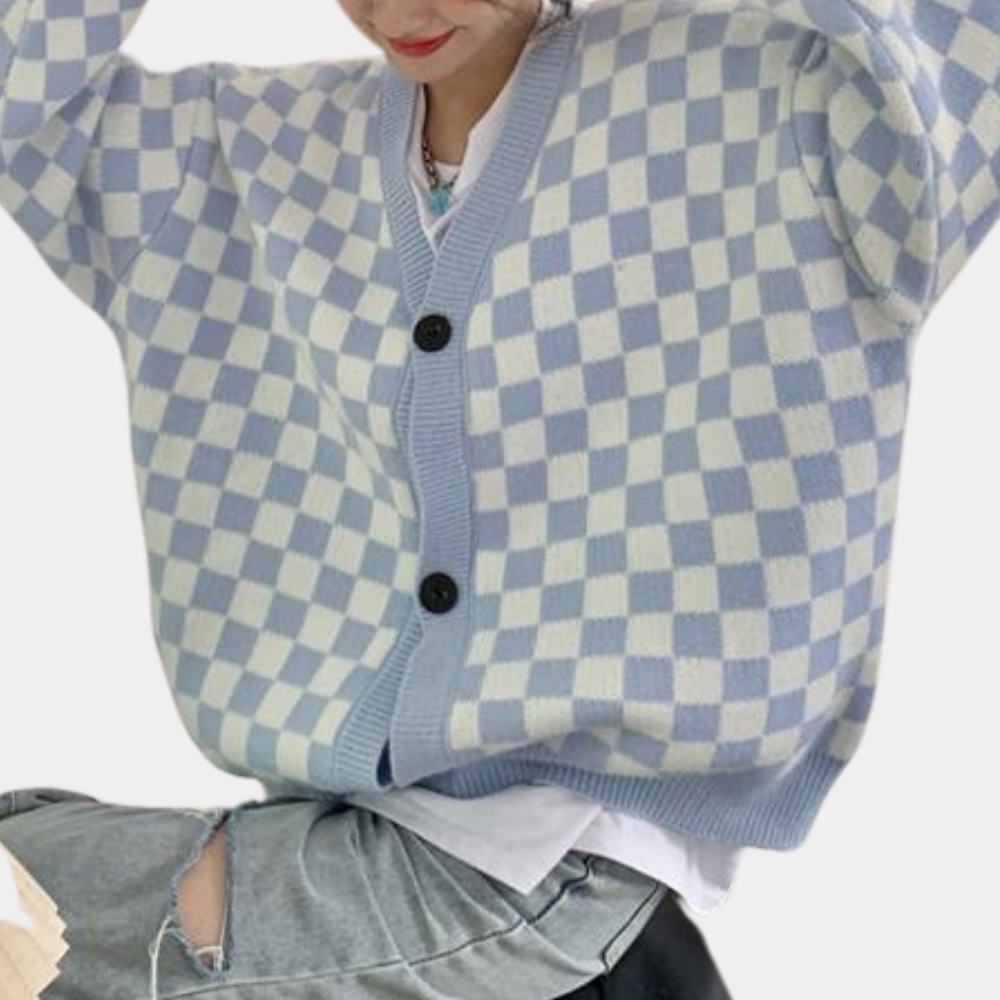De MELISSA - Klassiek Geruit Vest voor Dames biedt een vernieuwende kijk op een klassiek motief. Met zijn opvallende geruite design en comfortabele pasvorm is deze cardigan ideaal om een vleugje stijl aan je garderobe toe te voegen terwijl je de hele dag door op je gemak blijft.