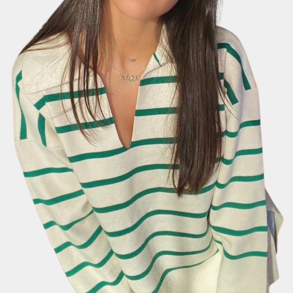 Ervaar de unieke mix van moderne stijl en nostalgische charme met de Gestreepte oversized damestrui.