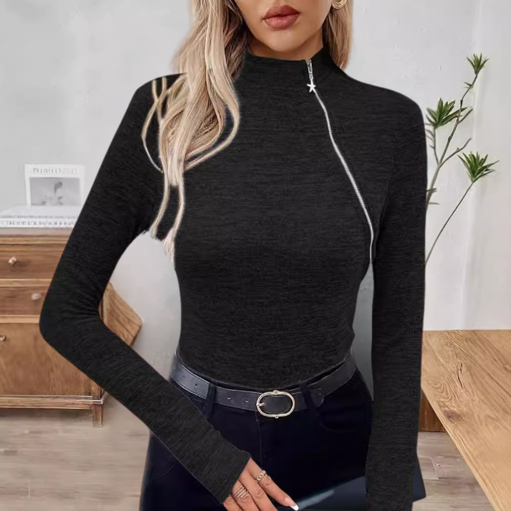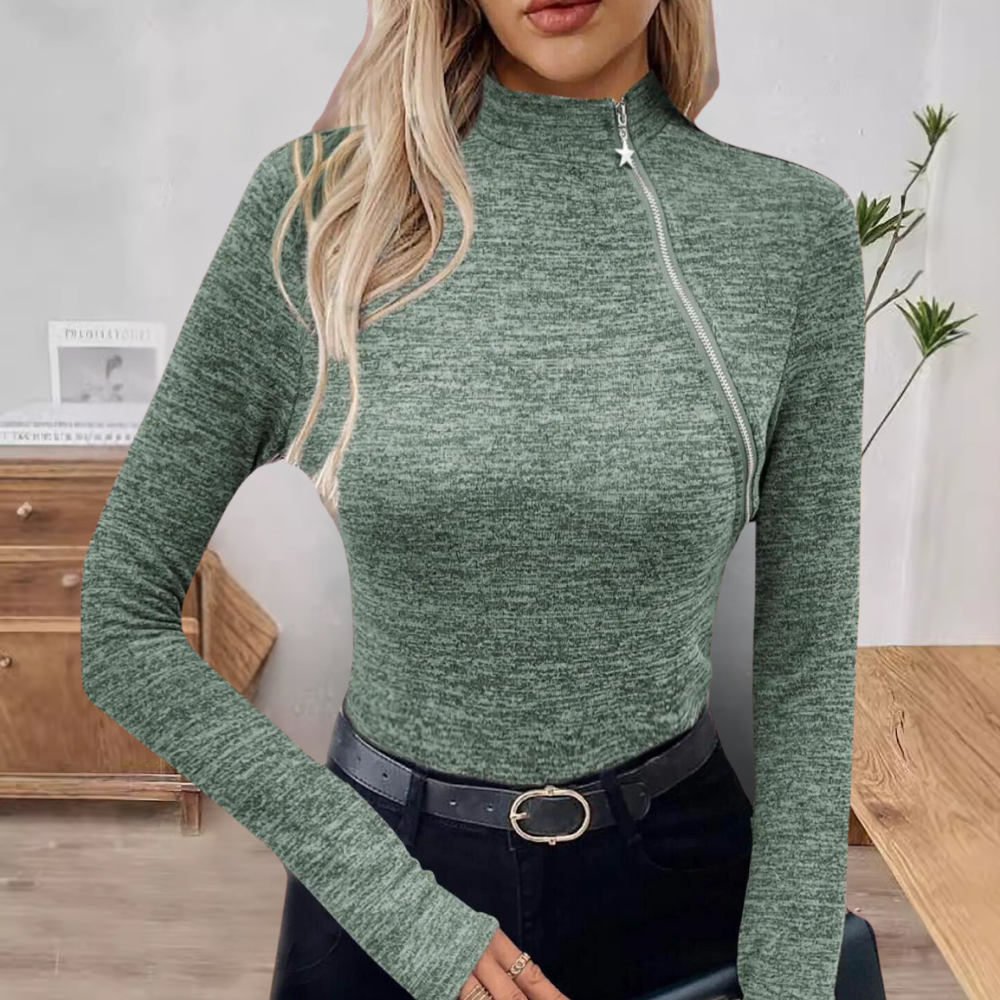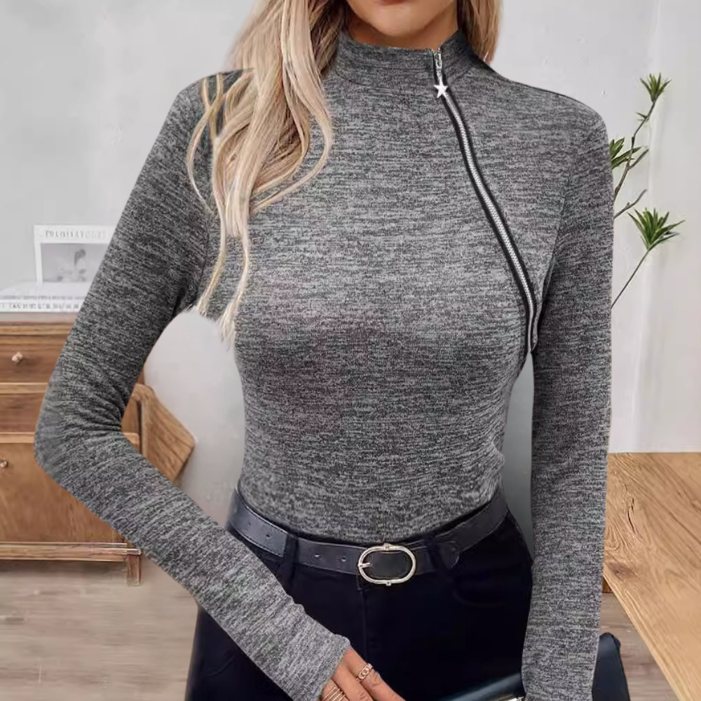 De MICAELA - Trendy Trui voor Dames een perfecte mix van elegantie en functionaliteit voor elke vrouw. Deze pullover met asymmetrische rits is ontworpen om een vleugje verfijning toe te voegen aan je alledaagse outfit.