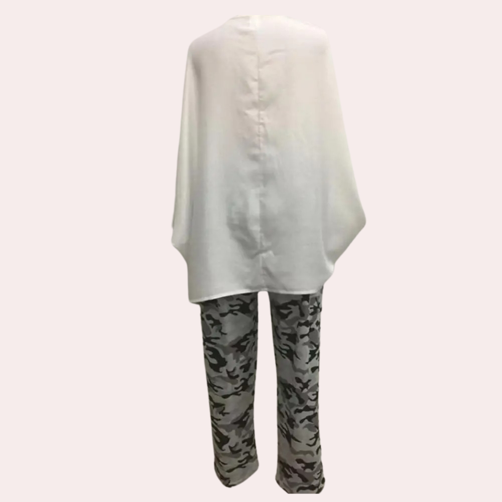 Hier is Mila Stijlvolle 2-delige damesset - de perfecte combinatie van stijl en comfort waardoor je er moeiteloos chic uitziet! Deze set draait niet alleen om mode; hij zorgt ervoor dat je je geweldig voelt, waar je ook bent. Gemaakt van hoogwaardig materiaal en met een flatterende pasvorm is Mila Stijlvolle 2-delige damesset een essentiële aanvulling op je garderobe.