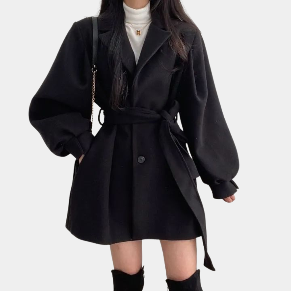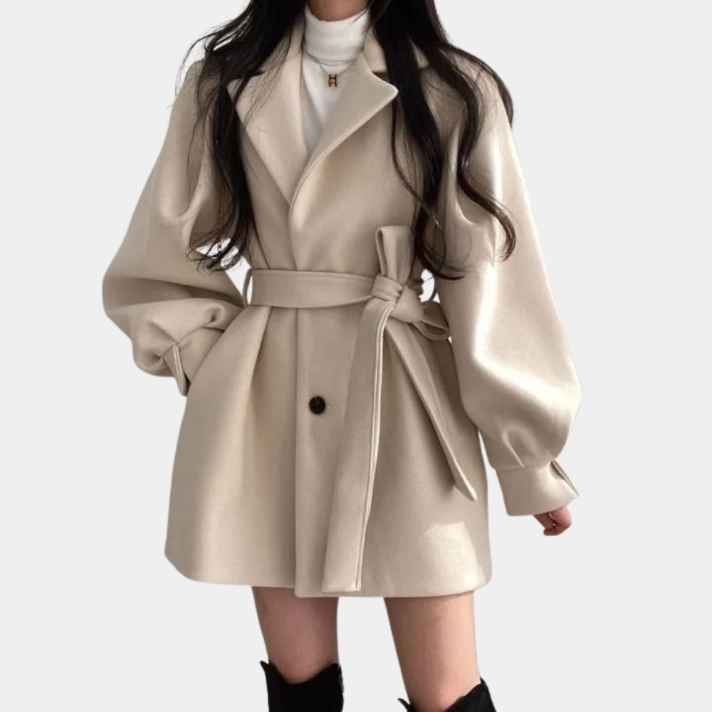 Stijlvolle damesjas met pofmouwen en riem - Perfect voor de Lente en Zomer