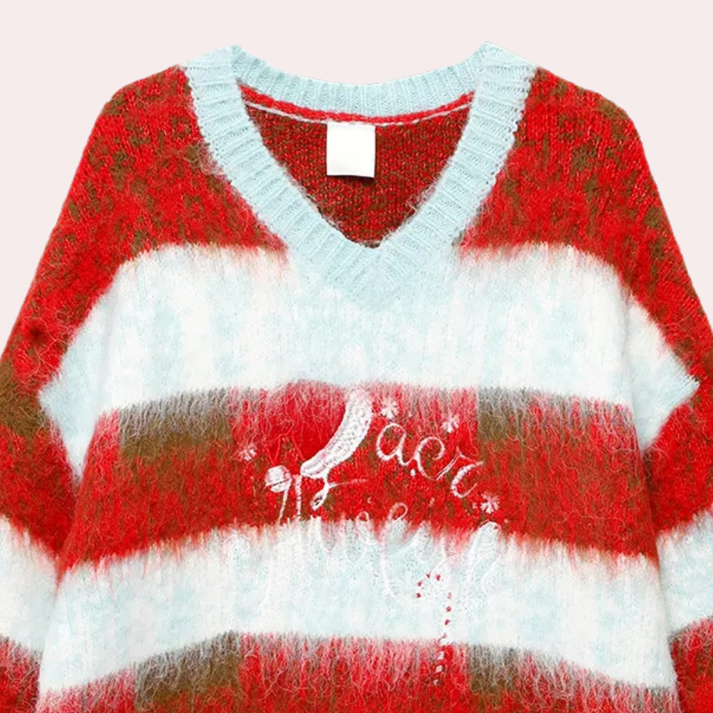 De NIANA - Trendy Kersttrui voor Dames is ideaal om de feestdagen met een vleugje stijl te vieren. Deze trui combineert een levendig streeppatroon met feestelijke accenten, waardoor hij perfect is voor familiereünies, feestelijke evenementen of een casual dag in de winter.