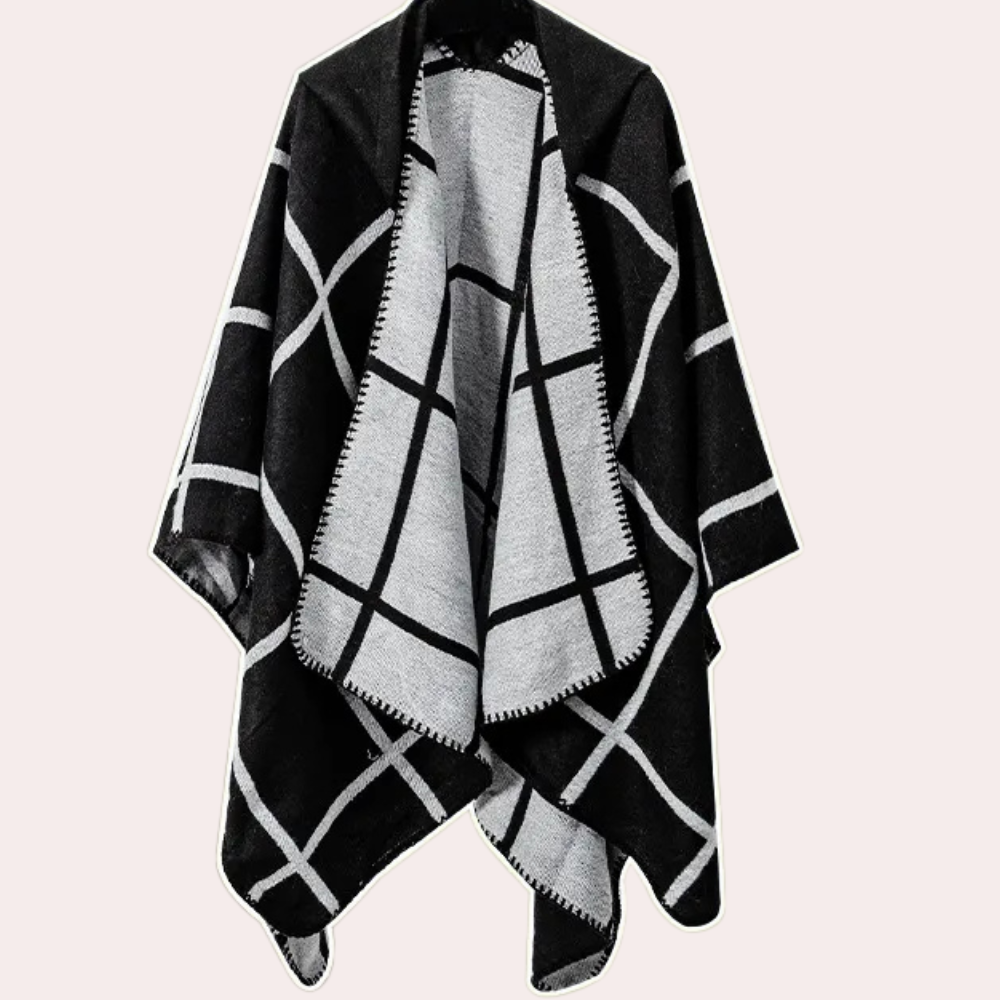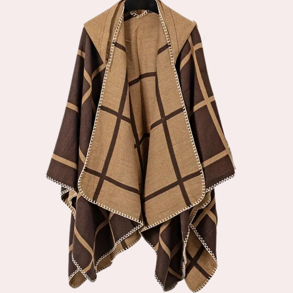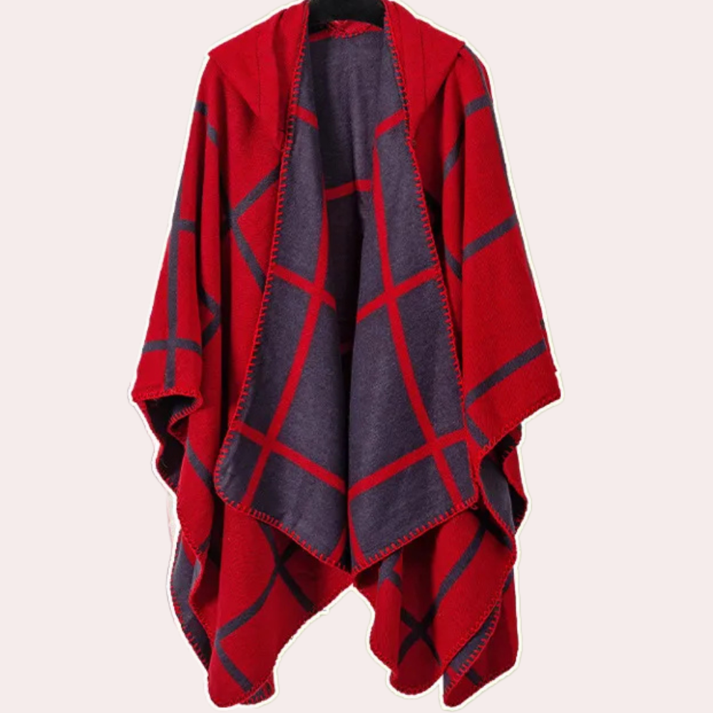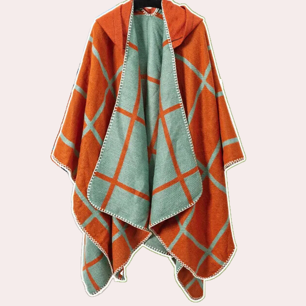 Blijf warm en stijlvol met PAMELA- Stijlvolle Hooded Shawl voor Dames—de perfecte aanvulling voor je wintergarderobe.