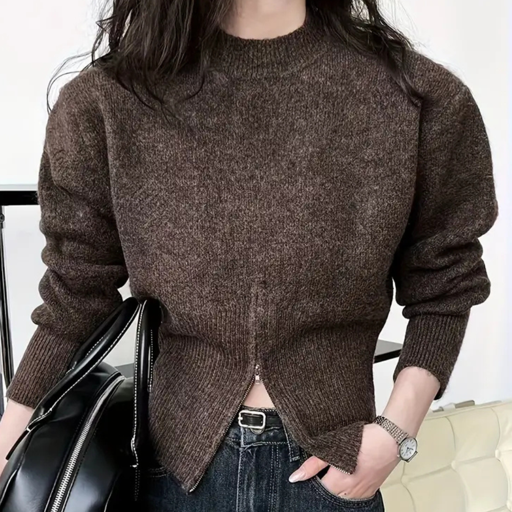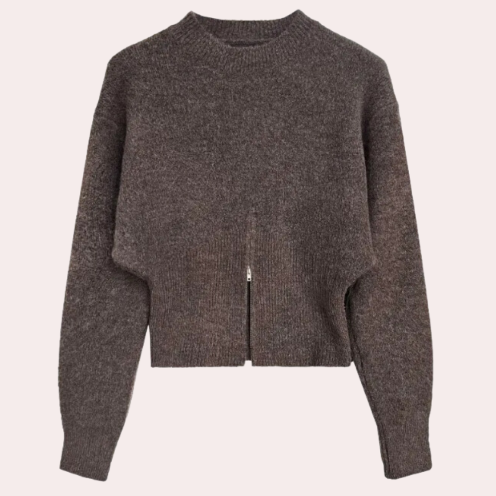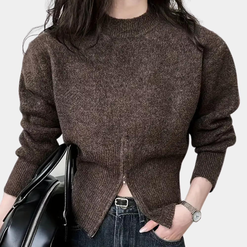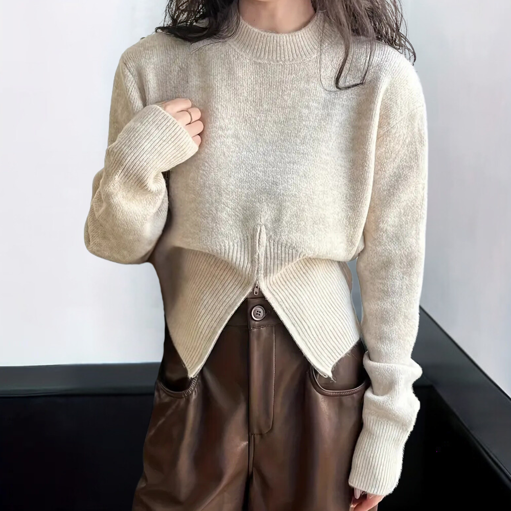 De PERSEPHONE - Elegante Trui voor Dames heeft een eigentijdse look met unieke ritselementen die uw garderobe zullen verrijken.