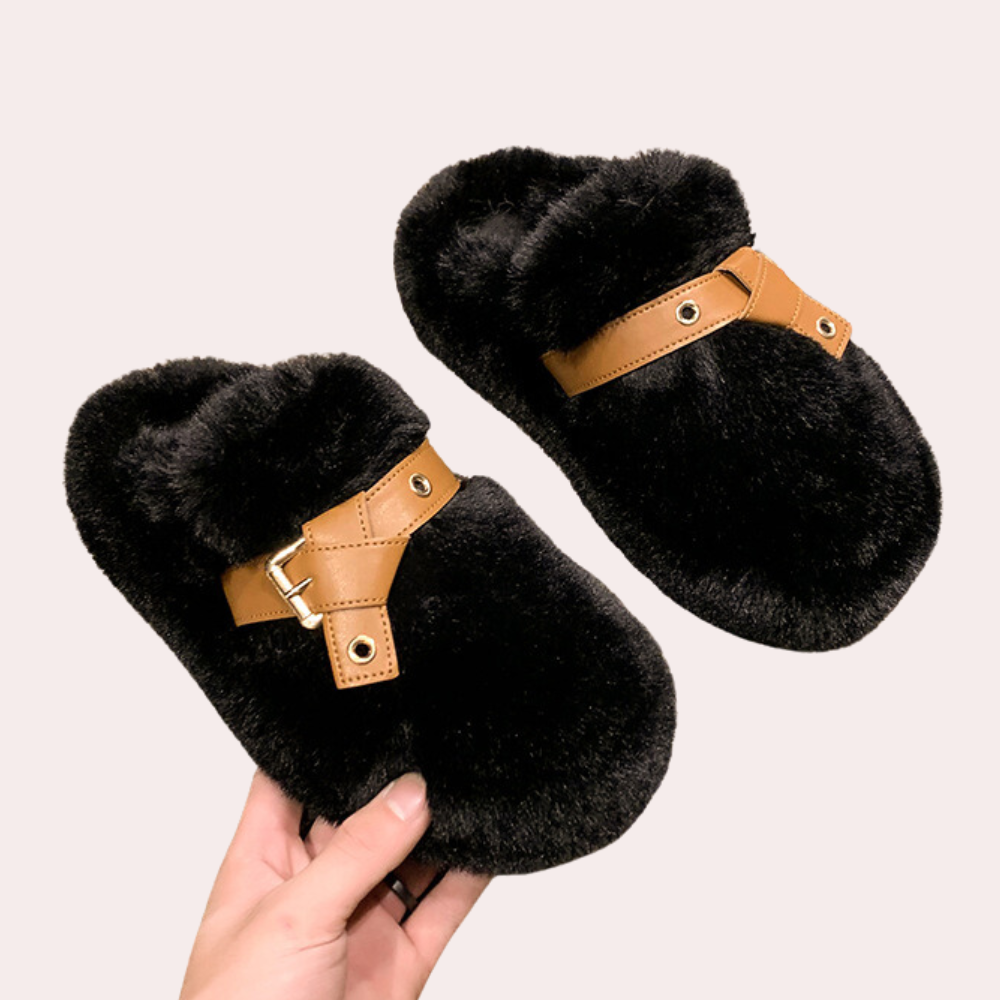 De pluizige binnenvoering zorgt voor aangename warmte zonder comfort op te offeren, terwijl de stevige zool betrouwbare ondersteuning biedt, perfect voor gebruik binnenshuis.