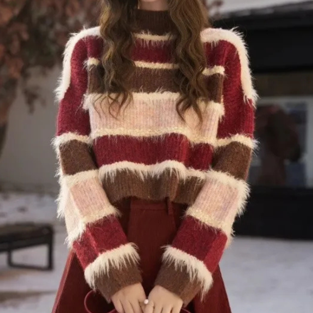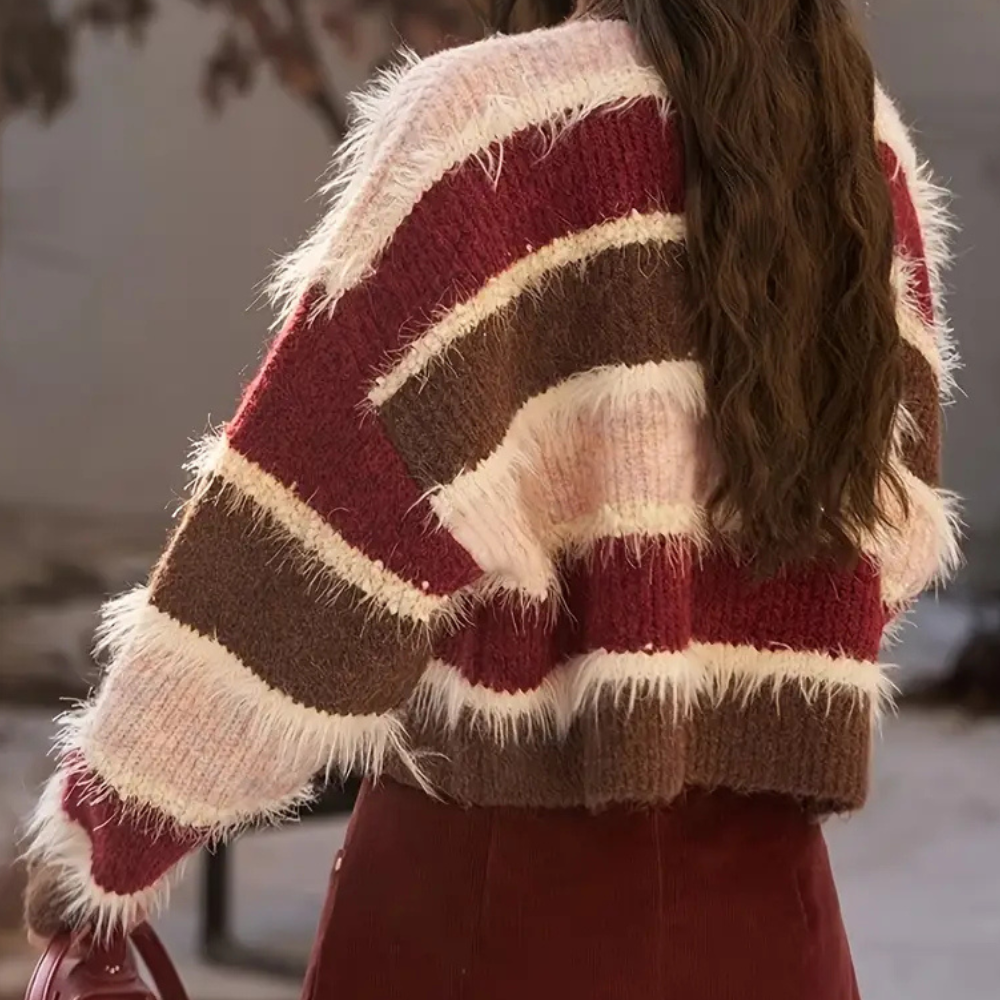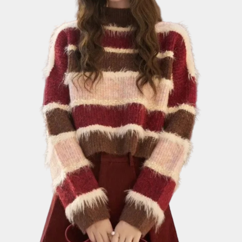 De SONORA - Moderne Trui voor Dames geeft een eigentijdse en frisse draai aan je dagelijkse look dankzij zijn opvallende gestreepte patroon en kortere snit.