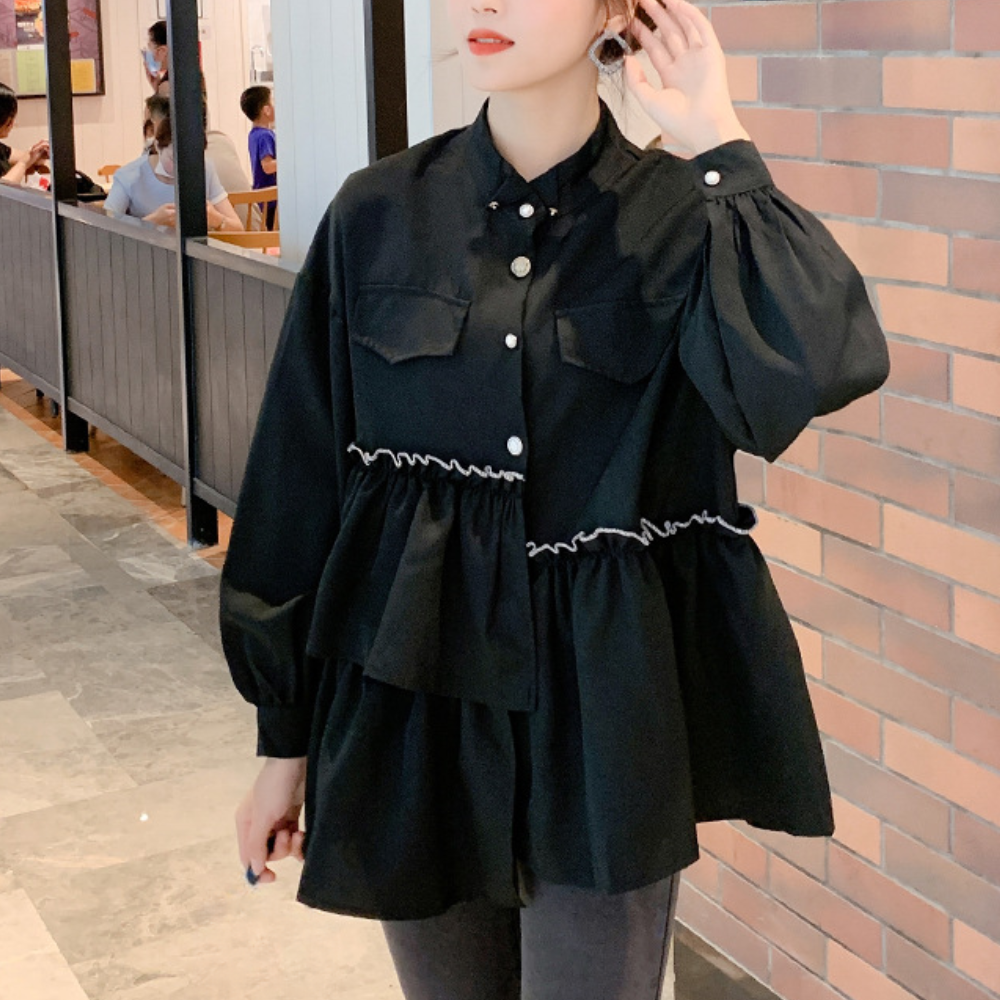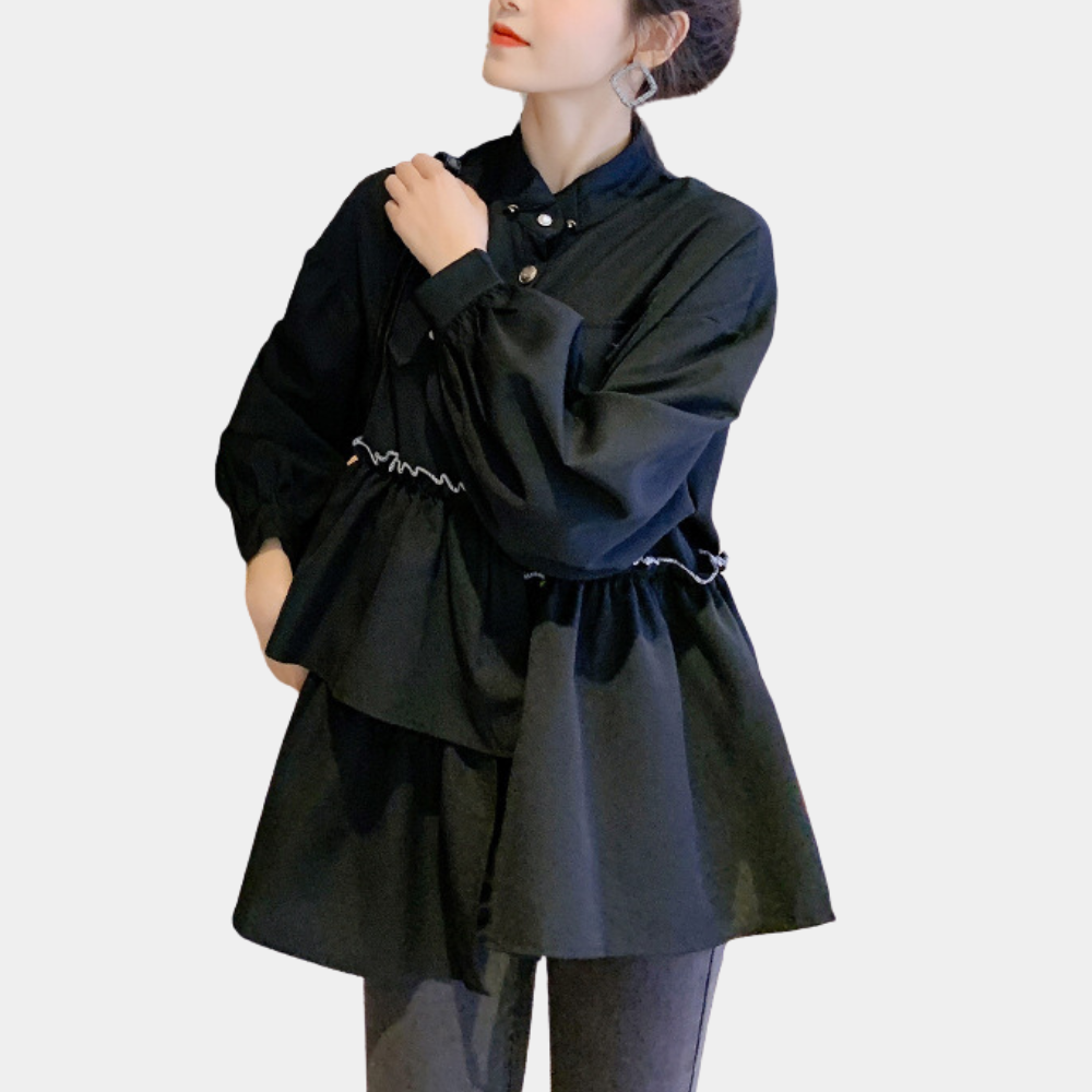 Accentueer je figuur: De lantaarnmouwen en mooie pasvorm benadrukken je vrouwelijke vormen.
