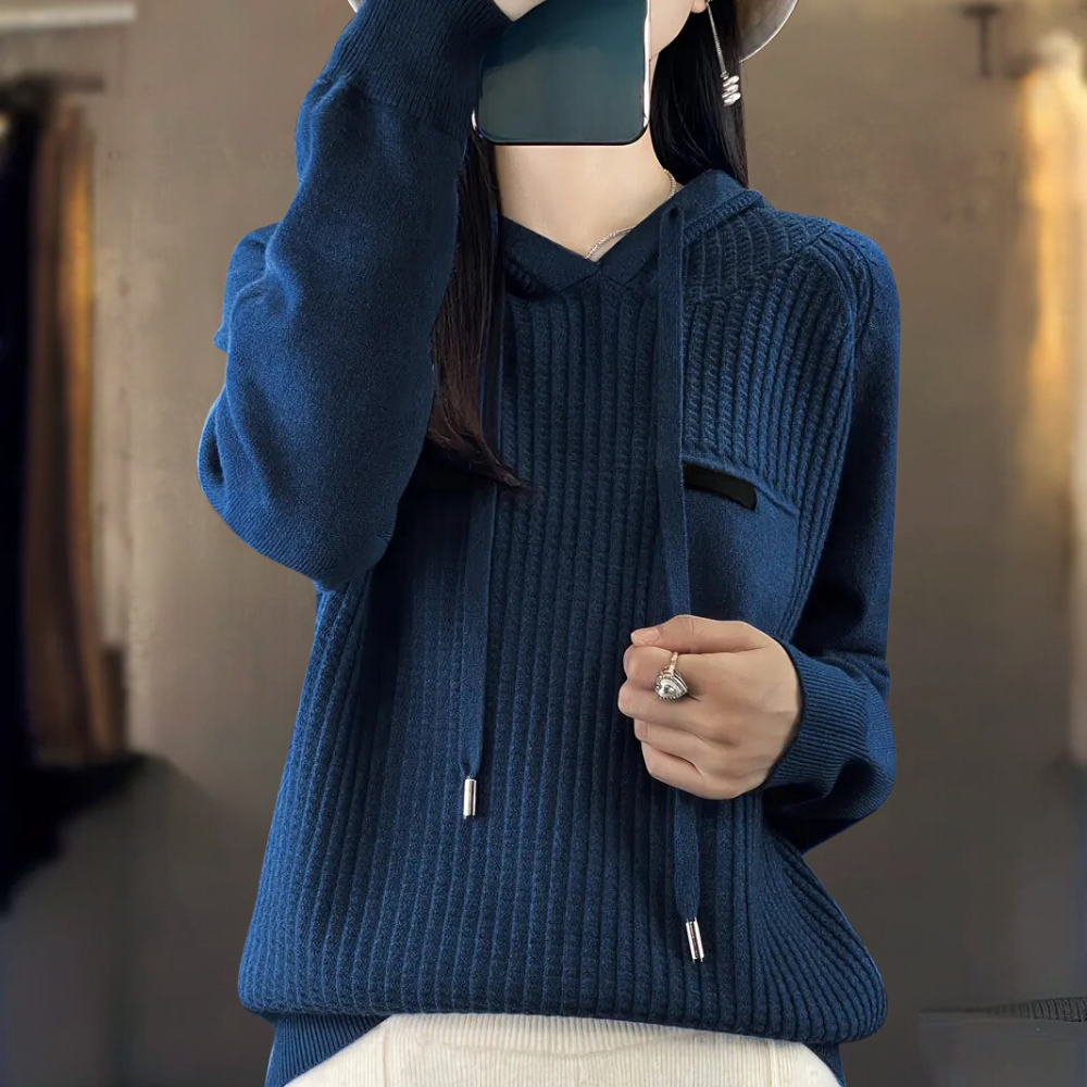 Transformeer je dagelijkse kledingstijl met deze veelzijdige gebreide trui met capuchon.