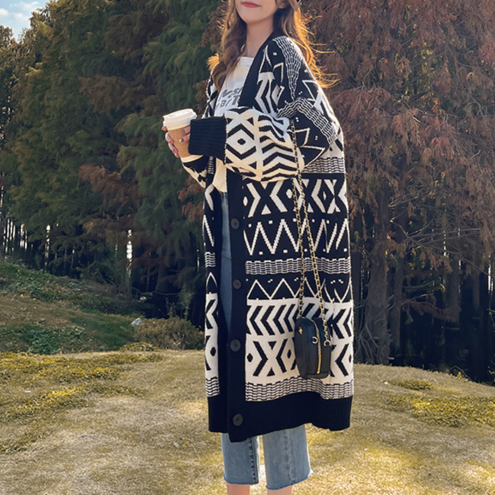 Wilhelmine - Geometrische Lange Jas - Tijdloze Elegantie voor Dames - Lente/Zomer Stijl